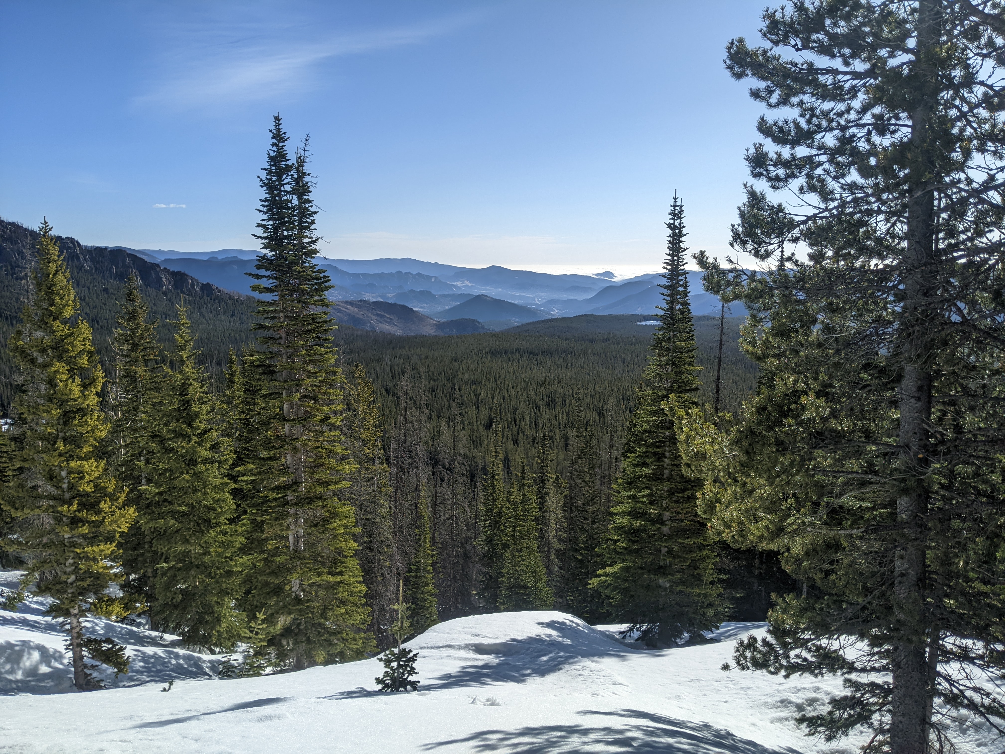 I was quite thrilled to regain the flat and more certain snow at the bottom of the canyon. I finally donned my snowshoes and enjoyed a beautiful and sunny climb back up around Phelps Lake, past the trailhead, then back down to my car.